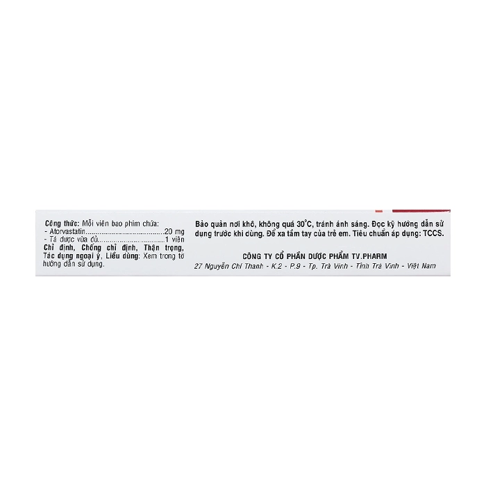 Atorvastatin 20mg TV.Pharm 3 vỉ x 10 viên (Atorvastatin)