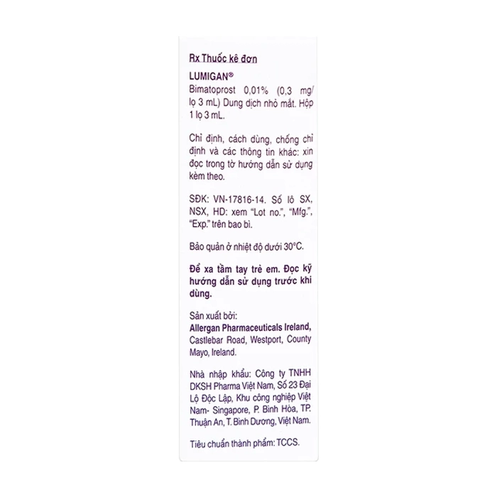 - Có khả năng sự tăng mọc lông xảy ra ở những vùng mà dung dịch Lumigan (dung dịch nhỏ mắt bimatoprost 0,01%) chảy đến nhiều lần tiếp xúc với bề mặt da. Vì vậy, điều quan trọng là sử dụng Lumigan (dung dịch nhỏ mắt bimatoprost 0,01%) theo hướng dẫn và tránh thuốc chảy lên má hoặc các vùng da khác.