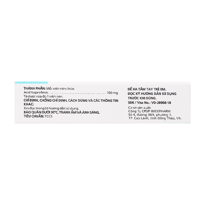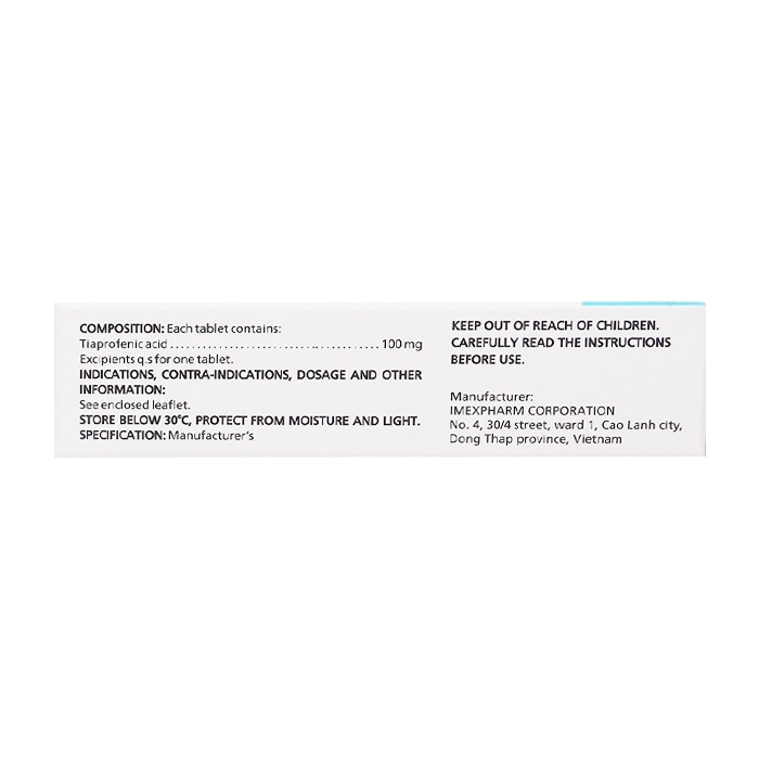 Sunigam 100 Imexpharm 3 vỉ x 10 viên (Tiaprofenic Acid)